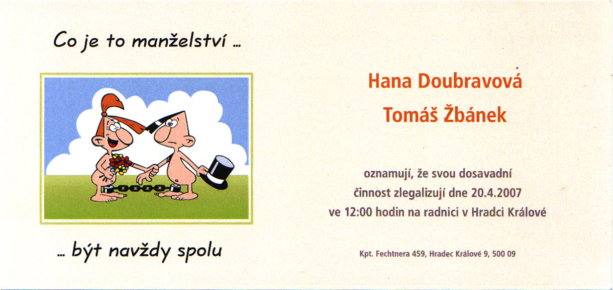 V pátek 20.4.2007 se vdávala Hanka Doubravová, nyní Žbánková.
